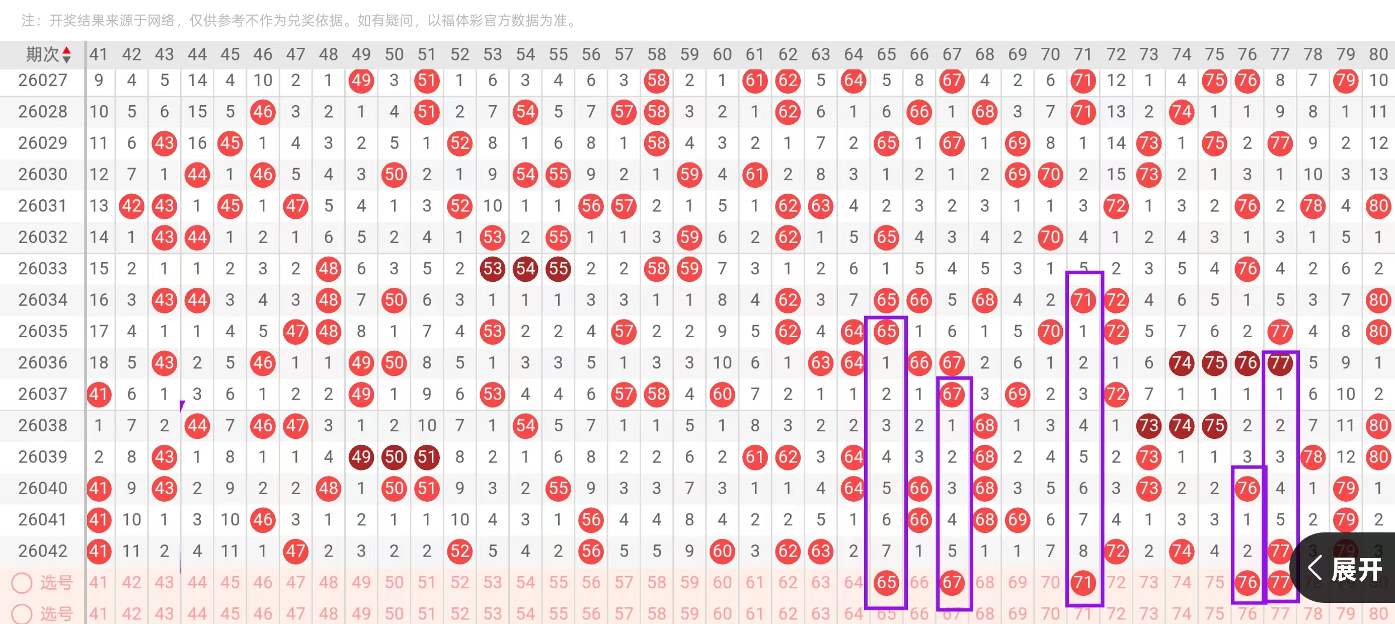 四区61-80:四区间,上一期回补了6个号码的下落,从近期四区间号码下落点位来看,一直在持续回补空缺位置,今天我们要重点关注的是4区间遗漏期数的一个回补,和重码的一个下落点位,在6头首先我们要重点关注的是62-63重码的一个回补点位,和65-67的一个下落点位,今天这里可用62-67和63-65的一个搭配下落回到七头位置,今天这里我们要重点关注的是70-71的一个回补点位和68-800的一个下落点位,今天这里可用71-76和73-77的一个搭配回补,这里要重点防的是开出对子的一个可能。