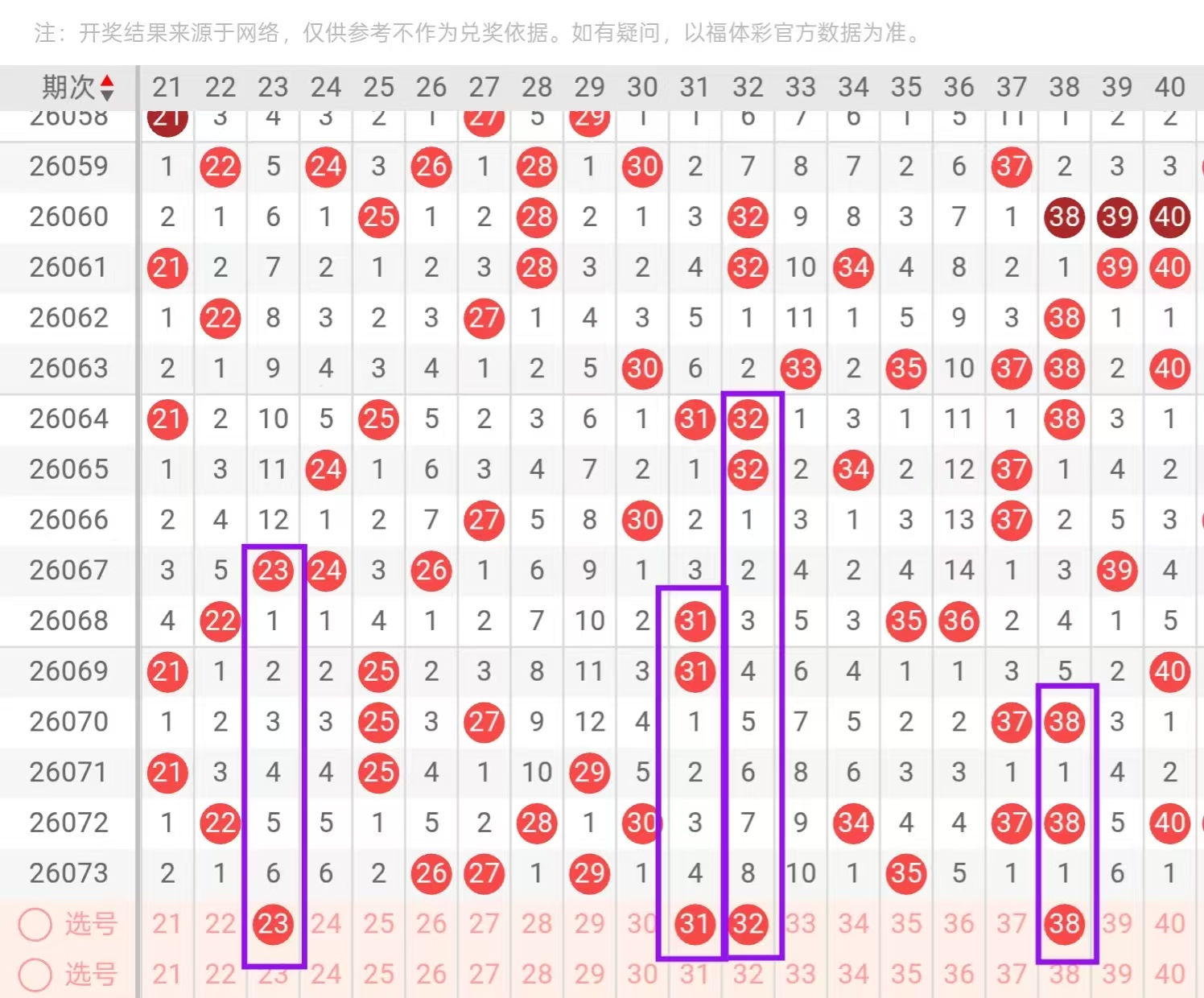 二区21-40:二区间,上一期开出了4个号码的下落,从近期二区间号码下落点位来看,一直处于忽冷忽热状态,今天我们要重点关注的是二区间大遗漏的回补和对子下面的一个回补点位在2头,首先我们要重点关注的是23-24的一个回补点位和31-32的一个下落点位,今天这里可用23-31和24-32的一个搭配回补,回到三头尾部位置,这里值得我们重点关注的是37-38的一个下落点位,和39-40的一个回补点位,今天这里可用37-40和38-39的搭配回补。