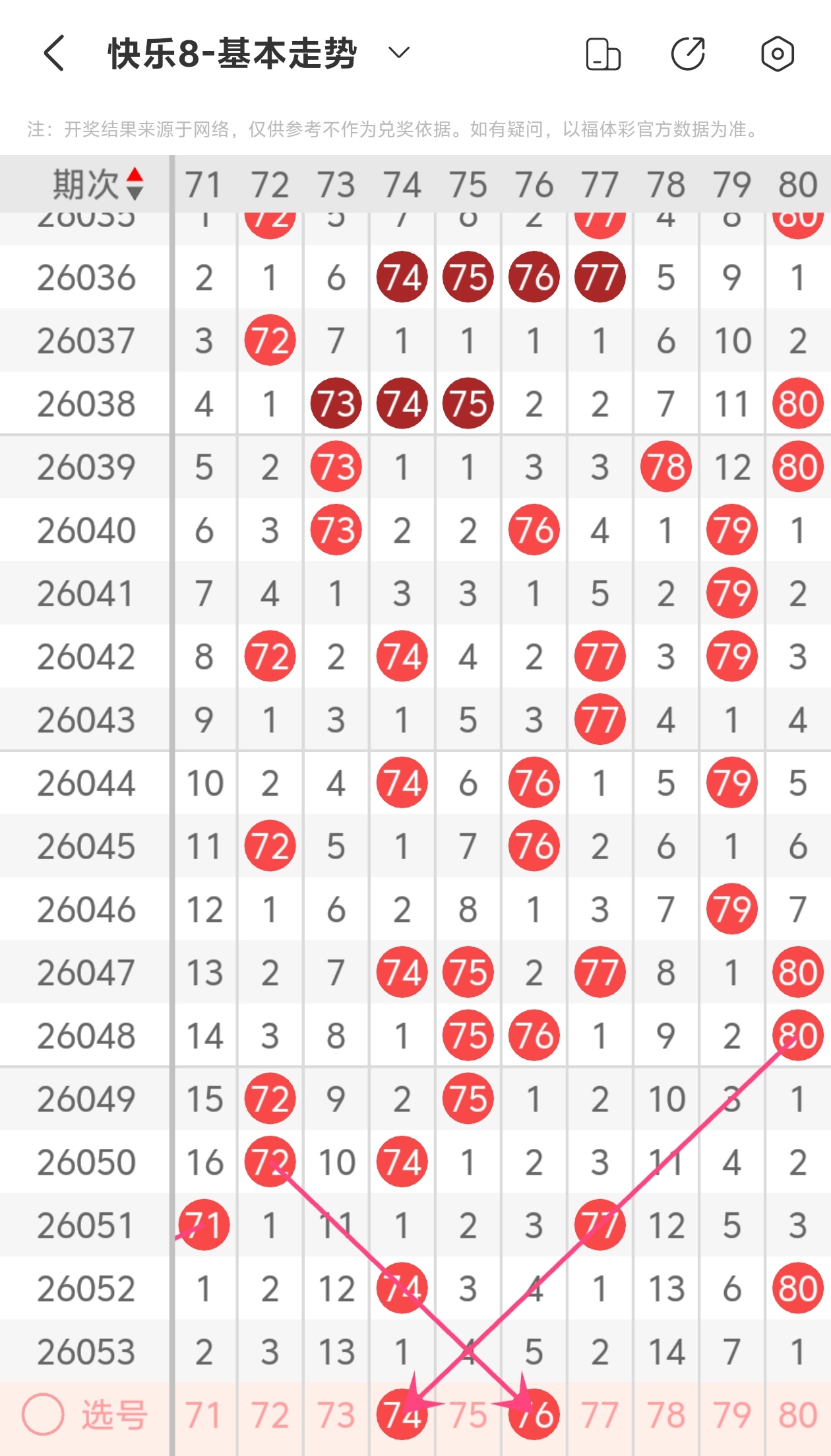 大伙都知道,玩彩票得理性,谁也不能打包票百分百中奖,别人的看法能参考,自己的判断也不能丢。但我这次对2026054期福彩快乐8的分析,那可是下足了功夫!