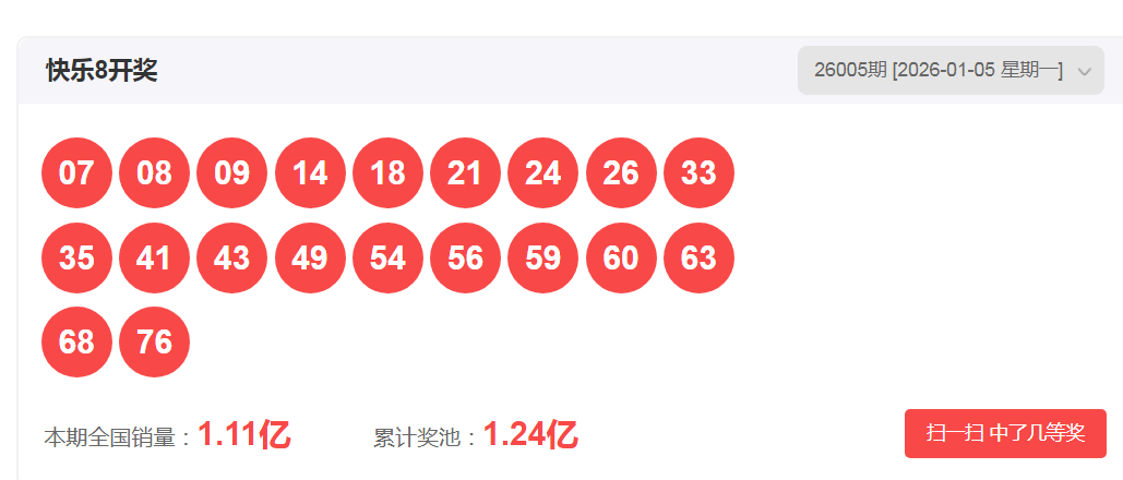 “专注快乐8,开心快乐吧!”您好,我是九尾锦鲤,有幸与您在这里相遇。上期(快乐8第2026005期)分析和推荐部分正确!今天组号上会继续努力!小车方案已精选优化,期望对您今天的选号、组号有所帮助。下面是我关于快乐八2026年第006期的走势研判分析及精选推荐。