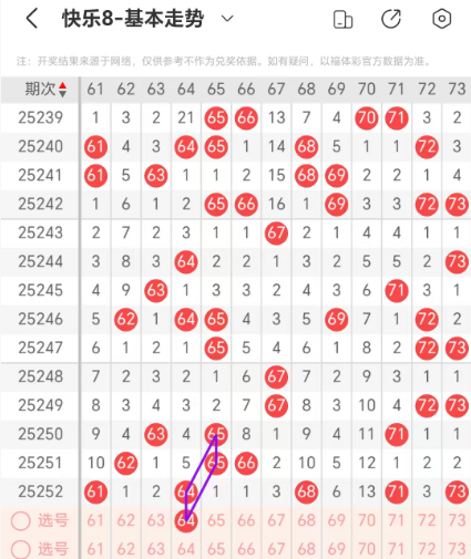 64码,如上图所示,与往期奖号64 65码形成一个平行四边形,所以看好。