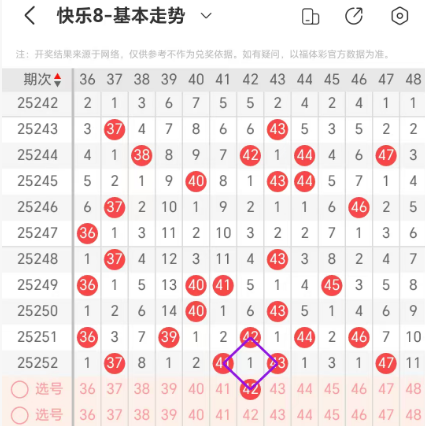 42码,如上图所示,与往期奖号41 43码形成一个正方形,所以看好。
