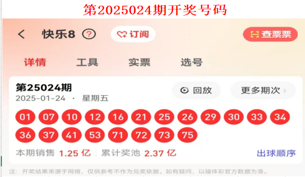 首先回顾上一期快乐8第2025024期开奖号码