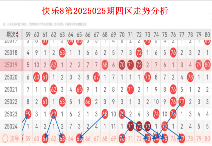 接下来是福彩快乐8第2025025期走势及分析: