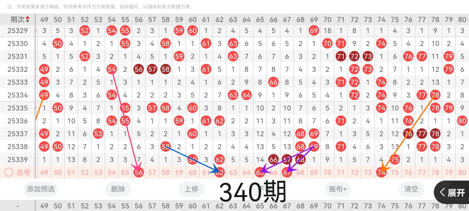 通过以上对上期的简单回顾,下面进入2025340期(下面简称本期)的选号分析: