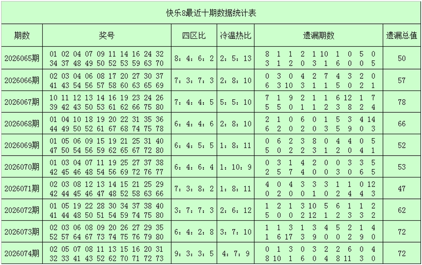 一、快乐8第2026075期奖号分析(定义:遗漏0-2期号码为热码,遗漏3-6期号码为温码,遗漏7期及7期以上号码为冷码,重码为上期开出奖号,邻码为上期没有出现,但与上期奖号差值为1的号码,例如上期开出奖号04,没有出现号码03和05,则本期03和05都为邻码,其它则为孤码。