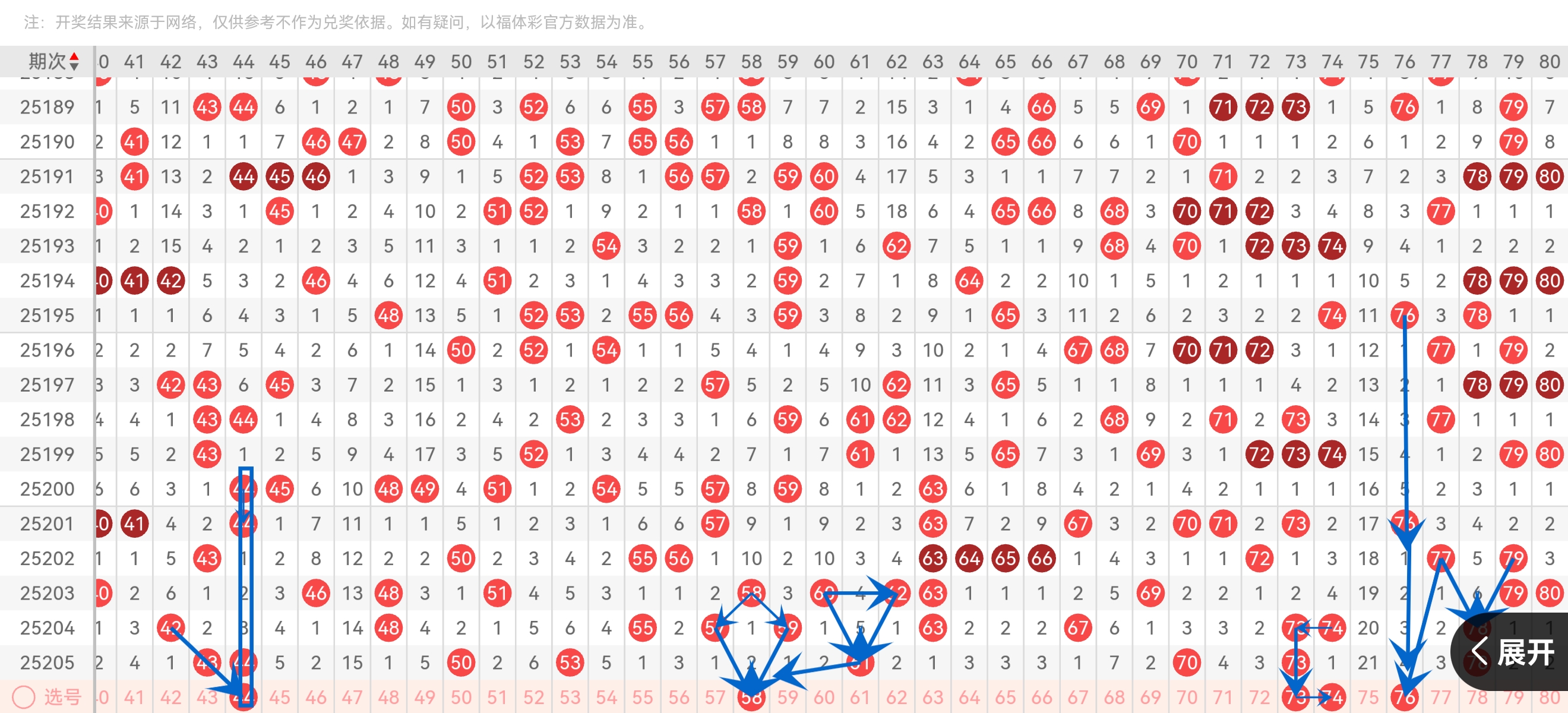 冷区转移 :前区(01-30)持续高热(本期占12个号),55-80区仅出4个号。
