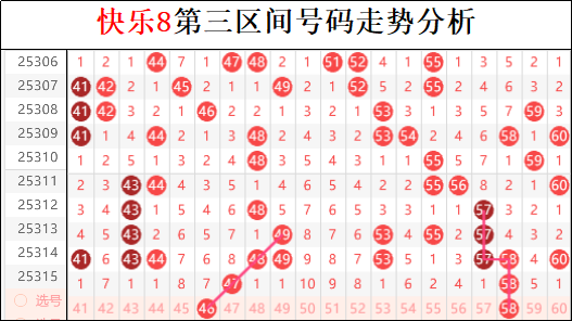 二区上一期并没有按照两码之后的惯性走势开出多码的布局,说明周期已然发生转变,尤其是连码居然在本次断区后没有回补,这显然不是好的走势。因此本期二区需谨慎对待连码回补的预期,重点防范空区或单码开出的可能。关注25、32、37等冷号反弹机会,结合斜连末端与边角形态筛选。若走势延续断档,则以守为主,避免重兵集结。同时留意一区向三区过渡的号码衔接,谨防重心转移带来的结构性变化。整体思路应更侧重规避风险,在形态未明朗前保持灵活布局,等待更清晰信号出现再做跟进。二区上一期仅开出两码,整体走势偏冷,但斜连结构仍有延续迹象。本期关注二区止跌反弹的可能,重点留意33、38、39等临近边界的号码,易形成突破。