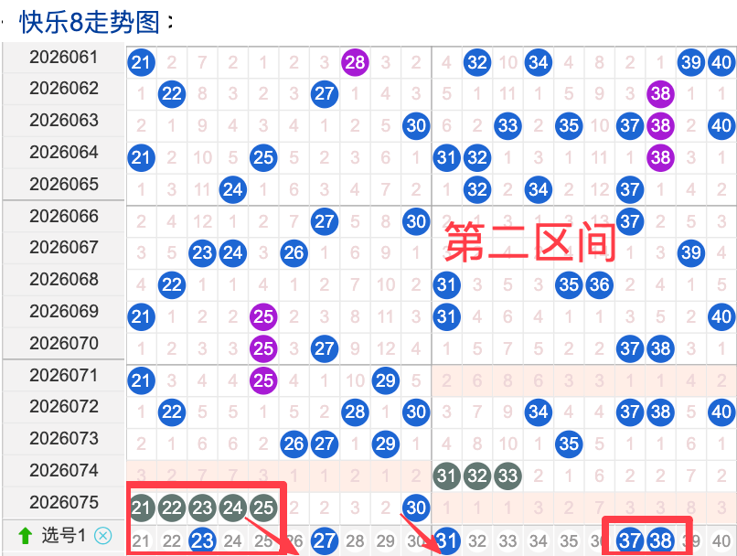 上期二区开出6个奖号(21.22.23.242.5.30.)上期回顾二区开出6个奖号二区间在上期落位同比前期的话呈现了一个递增的落位趋势,先来看本期号码23整体活跃度较,在近 30 期里有一定的间歇性出现,不是每期都开,近期整体走势还不是很稳定。号码27近期热度较,间隔性整体比较热,说明其在当前阶段活跃度较注意防守。号码31近期活跃度较热有一定的间歇性近期整体走势相对还是很有特别明显的冷热趋势变化,号码3730期内活跃度较有明显的连续出现形态走势,整体表现比较