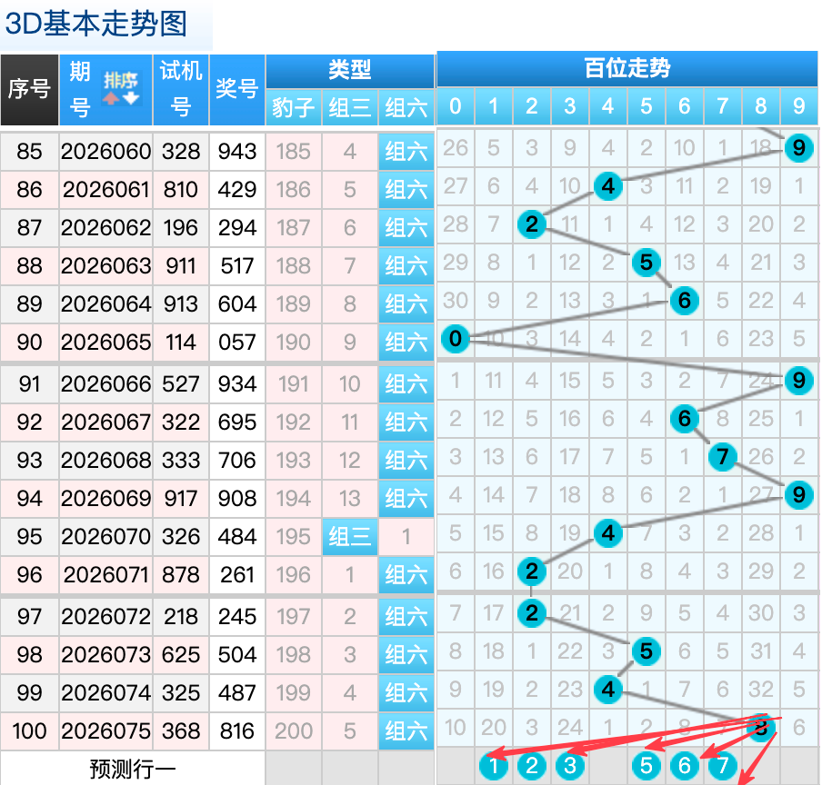上期的3D个位开6号球,上期开出的是组六按照形态的话本期打组六形态,上期的6号球落位是个位上的一个冷码回补顺位落位趋势本期先来看4号球在个位还是有机会继续走小号码的热吗落位点这里要注意防守1号球和2号球是这里的落位点是两个常搭配码落位点这里注意防守一码就好了也是两个冷码落位,再看9号球这里注意是一个走出冷码落位的回补的趋势要注意防守