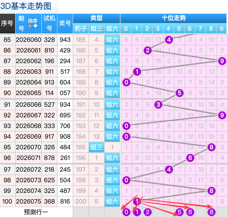 上期3D十位开出的奖号是1号,上期在十位上1号球这个号码是一个冷回补号码的回补落位点,本期来看1号在十位上要注意这个号码是有机会继续走出重码的落位趋势这里的号码回补的落位形态注意防守就好,再来5号球这个点位注意防守走出4跨的落位趋势8号球这个号码是折返的落位码回补要注意参考选择一码。0号球要注意走出分边的概率