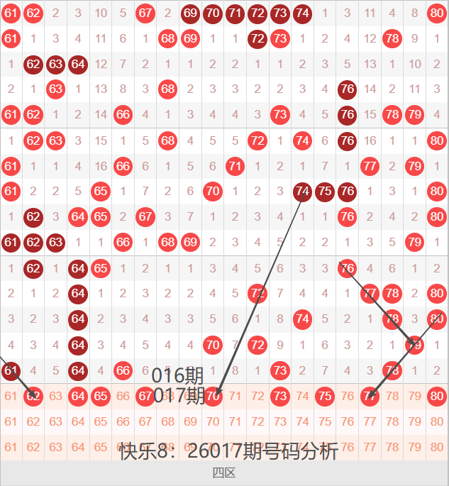 四区间61-80号码球走势,如下图: