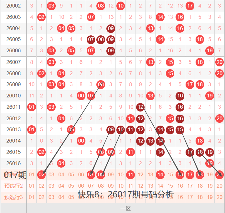 快乐8:26017期号码走势分析(26年,祝大家好运连连)