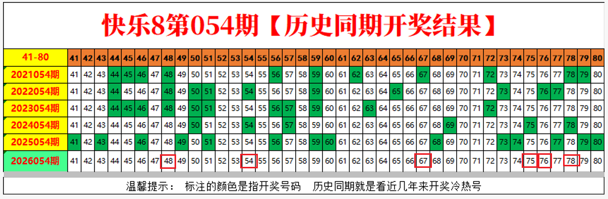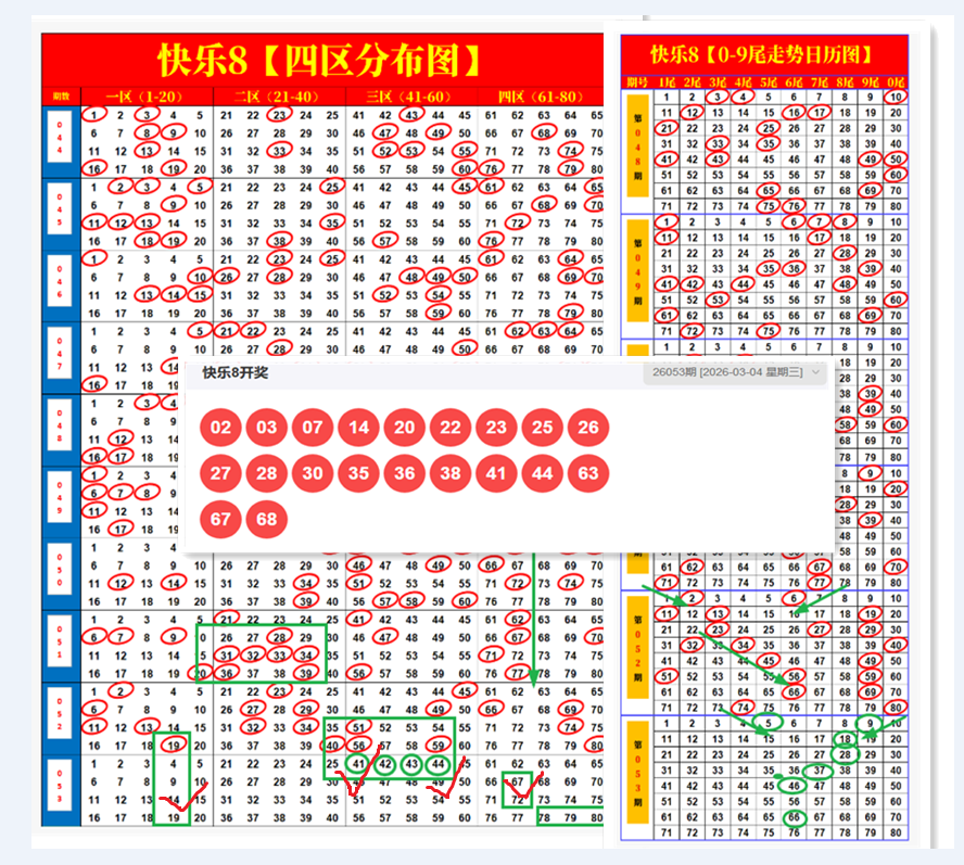 快乐8第2026054期尾号、重号、四分图走势分析【最新】