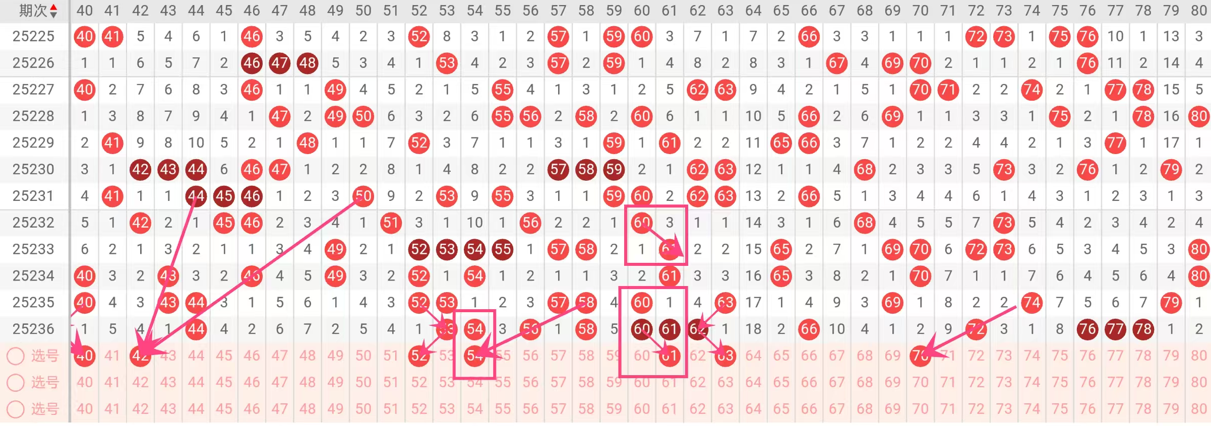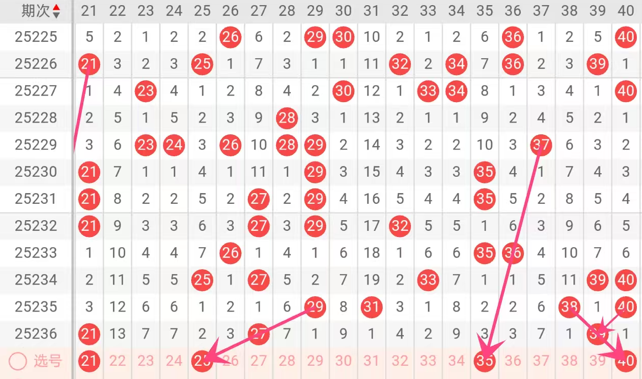 03、40、52 为 235 期的热号,遗漏仅 1 期,热号平均遗漏周期近 10 期,官方统计为 1.2 期,1 期遗漏处于合理 “间歇期”。