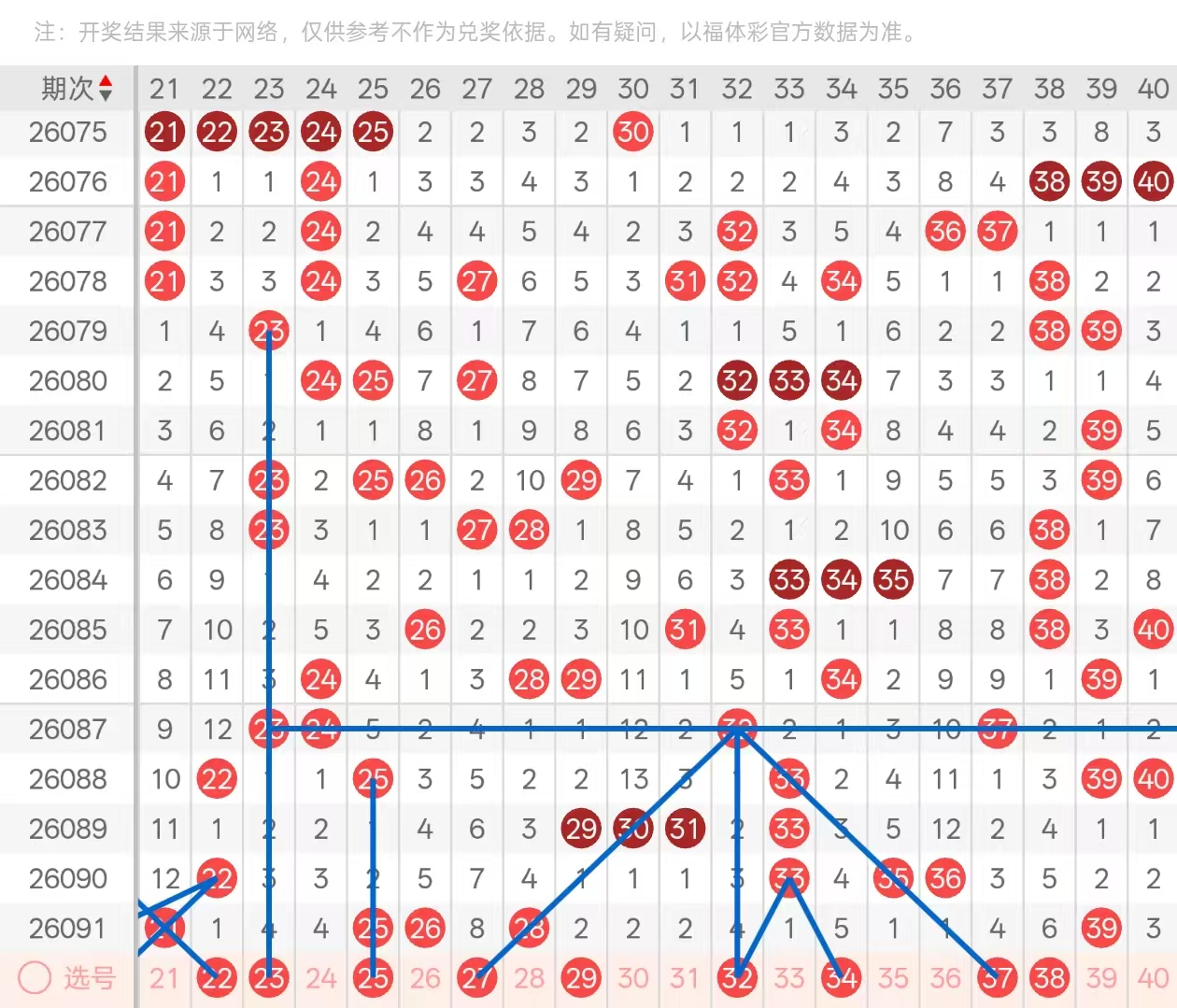 二区:二区间上期开出了5码,二字头头部位置开出了十二期遗漏下落的21,为22的孤码分边号码,中部位置开出了两期遗漏下落的25,与5期遗漏下落的26,以对子形态开出,尾部位置则开出了4期遗漏下落的28,以孤码形态开出。三字头则仅仅开出尾部位置,空2回补的39以孤码形态下落,前端部分一码没有开出,处于放空状态,形成了断区。本期二字头头部位置可关注22的空1回补,与20两码为交叉形态做二选一即可。其次2324对子的四期遗漏回补做1码下落,24与27为2526对子的分边号码,尾部位置293031三码三连号的形态,下面空2回补做一码下落。三字头头部位置可关注33的3重空1分边号码3234做2选1,且中部位置3536处于对子的空1下落,防守一码下落,优先考虑35的空一回补,尾部位置37的四期遗漏在本期可作为重点考虑,以及39的孤码分边号码3840做二选一。