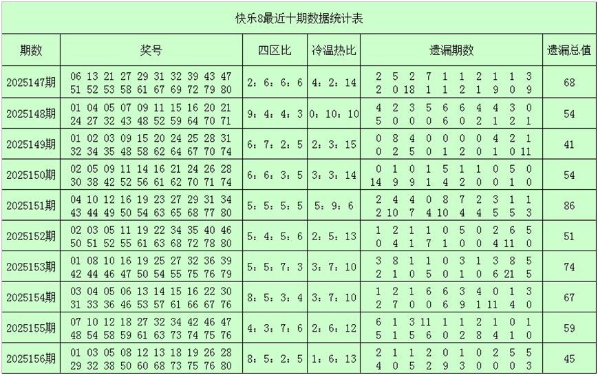 一、快乐8第2025157期奖号分析(定义:遗漏0-2期号码为热码,遗漏3-6期号码为温码,遗漏7期及7期以上号码为冷码,重码为上期开出奖号,邻码为上期没有出现,但与上期奖号差值为1的号码,例如上期开出奖号04,没有出现号码03和05,则本期03和05都为邻码,其它则为孤码。