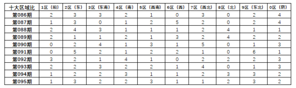 近十期走出了2-1-2-2-0-0-3-2-1-1走势,根据我前面对一区的解释,说明这个区是很有规律的。