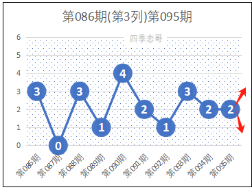 近十期走出3-0-3-1-4-2-1-3-2-2走势,根据我上面对此区的定义得知本区同等规律浮动。