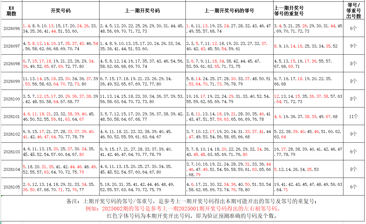 特别提示:关于邻号和邻重号的数据统计,邻号,是指上期开奖号码的左右相邻号码5其中重复出现的邻号,即为邻重号。一定要区分,邻重号不是上期开奖号码的重号,是邻号里的重号。可能新关注的粉丝,还不适应这种统计方法。熟能生巧,无它。统计方法不同,得到的数据结果不同。个人分析,仅供参考。