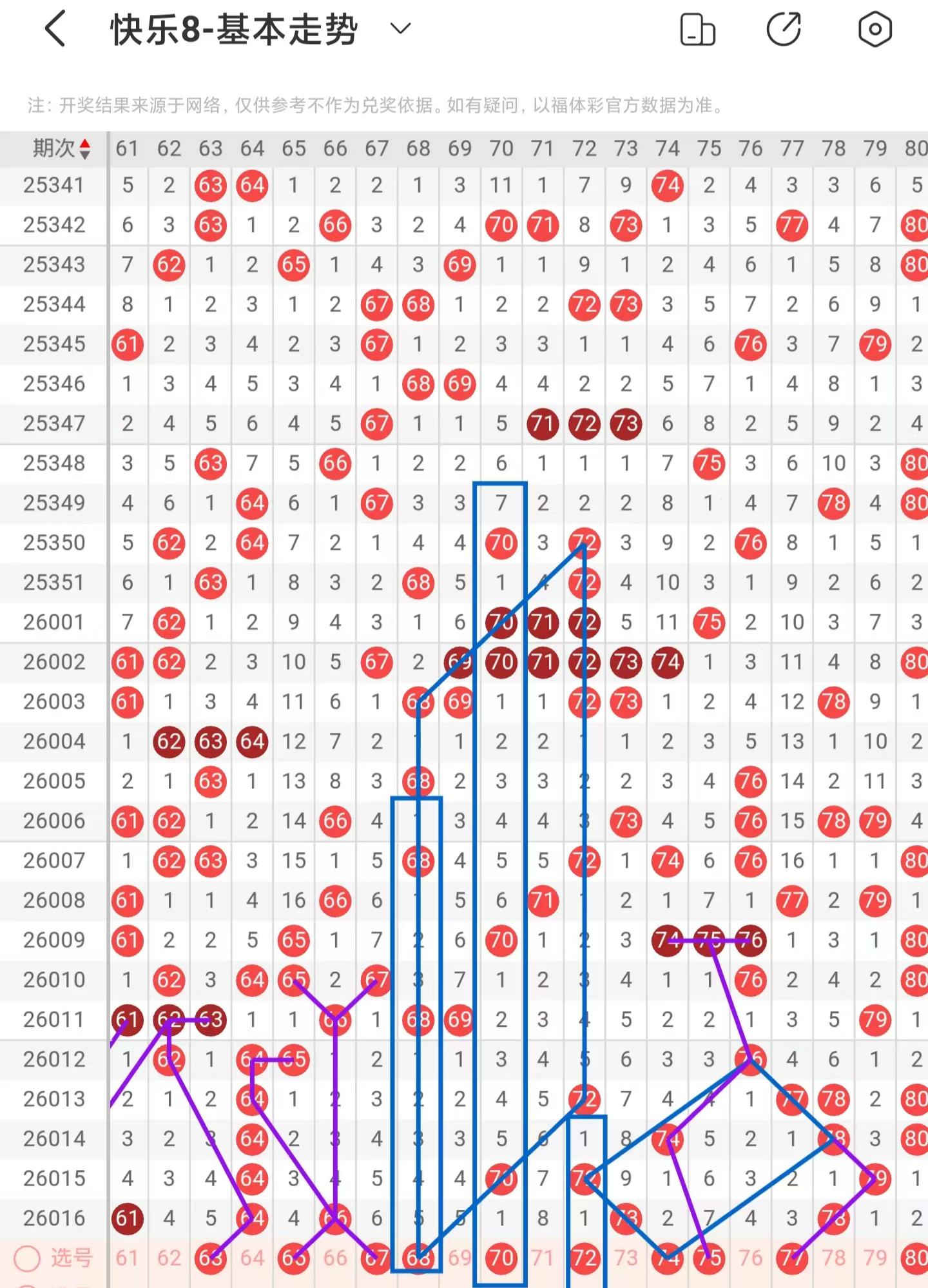 本期注意考虑一区间的增加落号,二区间的减少落号,三区间的稳定落号,四区间的稳定落号,本期推荐关注03-06-10-15-20-21-22-26-30-36-41-43-47-52-57-63-65-70-74-80。
