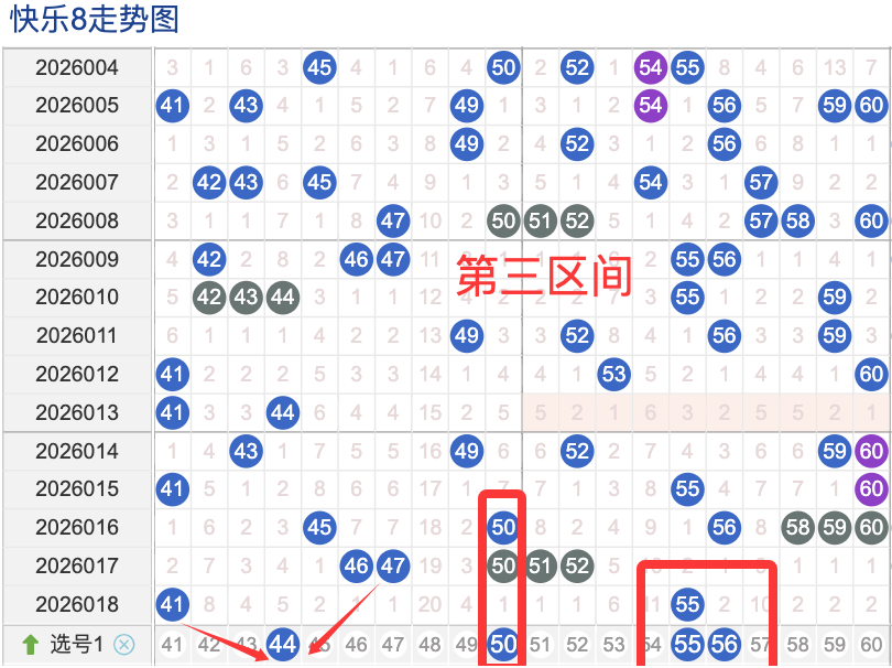 三区间开出了2个奖号(41.55)上期回顾三区开出2个奖号上期的三区间的奖号数量呈现一个递减的形态,4头回补1个号码,本期先来看号码44近期出现频率相对来说还不是很稳定。偶尔有时间隔期数也是很长,说明其在近期的开奖中较冷的,号码50在近 30 期内出现次数相对较不是稳定的号码,近期的活跃度也是较温冷。号码55有一定的间歇性,通常间隔5-3期会出现一次,没有明显的连续出现态势,走势相对较热,在整个第三区间的表现本期还是可以防守的。号码60走势相对近期较温热,近期没有连续间隔落号的情况,活跃度近期处于较温热状态注意防守。