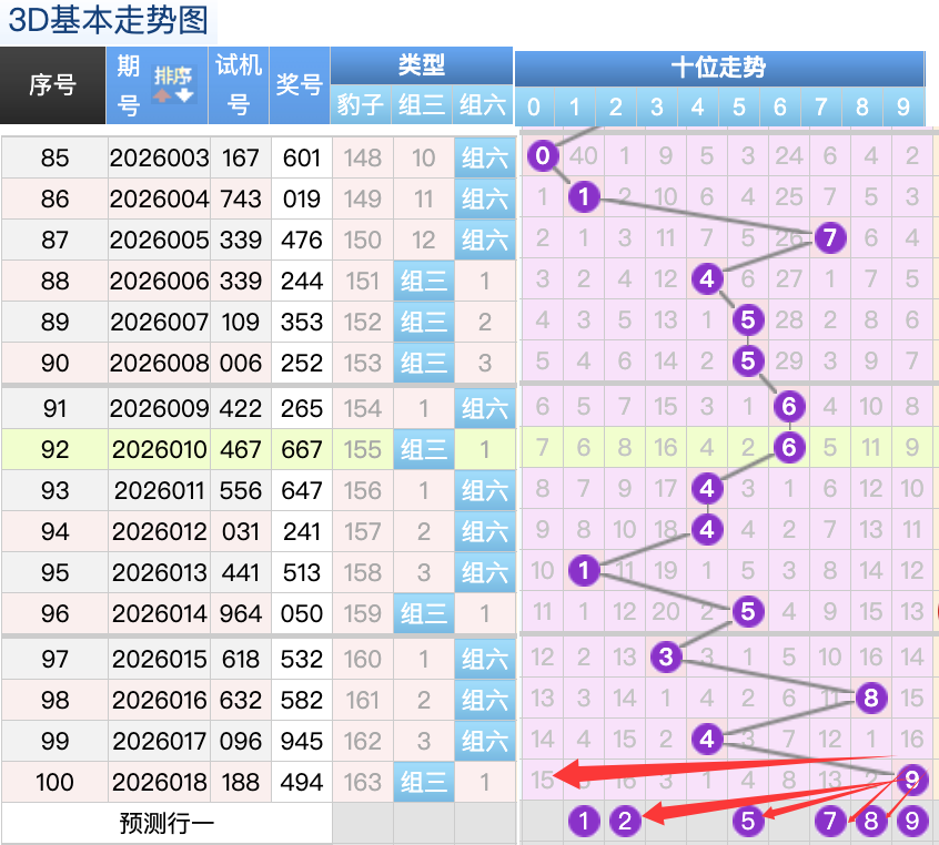 上期3D十位开出的奖号是9号,上期在十位上9号球这个号码在上期是一个冷码回补的落位点,本期来看7号和8号球在十位上要注意这两个号码是有机会继续顺着上期的9号球继续走出两个常搭配落位趋势这里的两码是大号码注意防守一码就好了,4号球还是个折返码的落位点,然后2号球还是一个冷码回补的落位形态也是一个7跨的落位形态回补落位点,再来看5号球是热码回补这个点位的落位点参考就好。