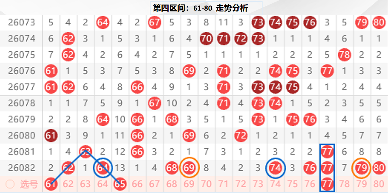 四区分析:【61-80】(走势图标注号码非小黄车大底,请谨慎参考,具体思路将在直播间分享讨论)
