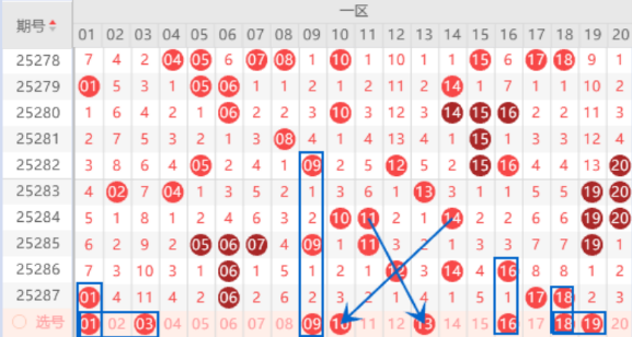 下图为01-20号数字区间走势分析图: