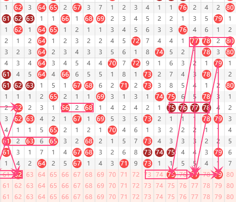 四区分析:【61-80】(走势图标注号码非小黄车大底,请谨慎参考,具体思路将在直播间分享讨论)