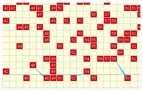 重号分析:本期开出7个重号(16、24、32、33、49、72、74),重号表现活跃。最近30期重号平均每期出现4.8个,下期继续关注重号,预计出现6个,推荐关注30、35、54、63、64、72。