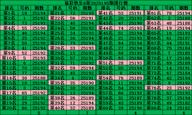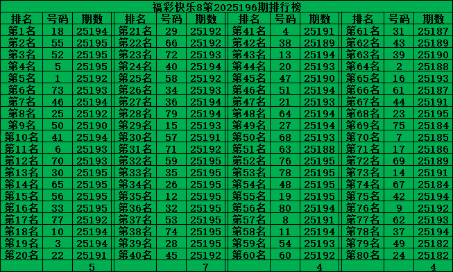 最后再把号码分为五区:一区01-16号、二区17-32号、三区33-48号、四区49-64号、五区65-80号,理论上每个区每期应该开出4个号码,2025195期五区比例:2:6:3:5:4