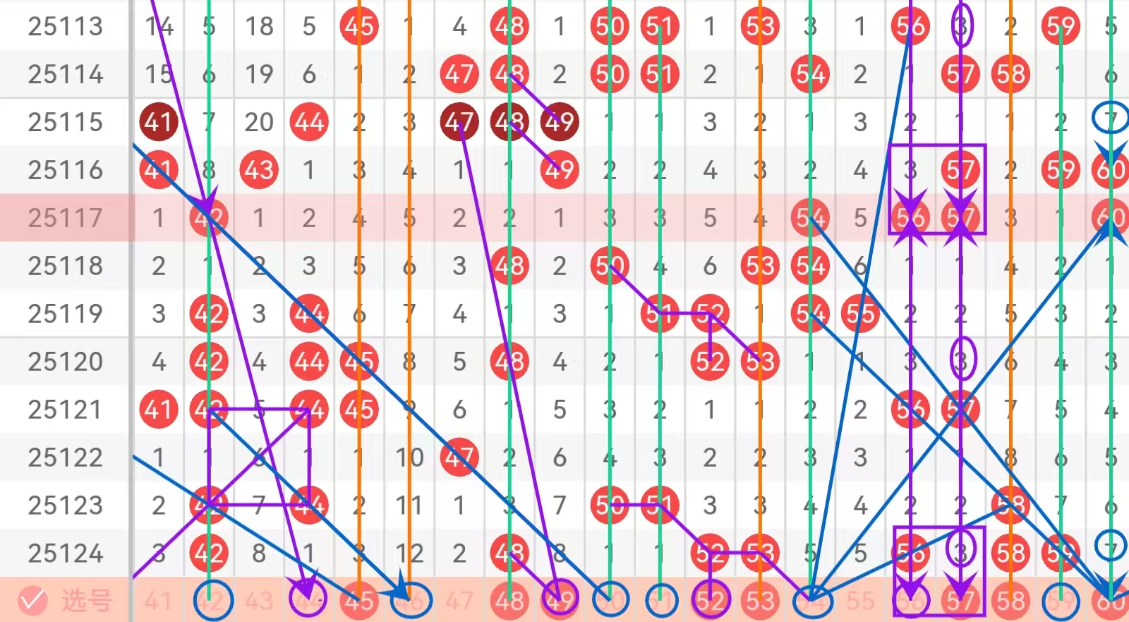 三区间上期继续开出了7个号码球, 持续稳定热态;本期分边41可小防,防走4321遗漏;42的三重主防;43本期继续不看;双7期斜连,上下对称,可小防;45的高数据带斜连,孤码的隔期分边,可主做,带上44做44 45热态连号组合;47也是高数据,12期遗漏值,本期可主防,甚至带上46做连,非常不错;47 49是48的孤码分边,可主防49,小防47;48走重小防;50 51隔期均小数据,双码二择一小防;52 53下面,能否走上面同形态,九哥推荐主做53看重,主防52,复式码可做52 53小连;54多斜连小数据的号码球可主防;孤码56的分边55 57, 56 57/55 56可小连;九哥更看好57 58的连号,59看重小防;7期值60可主防;