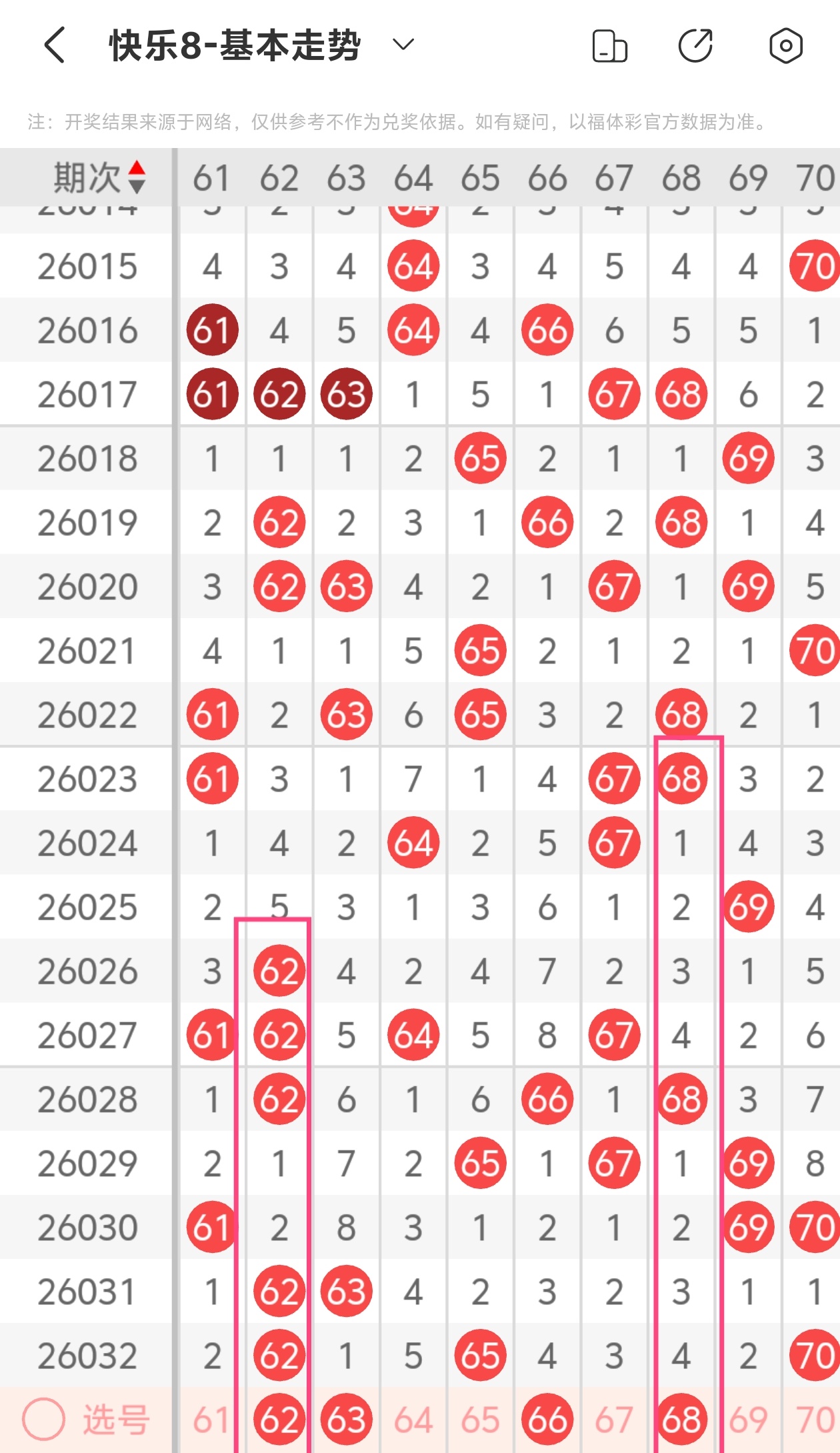 大伙都知道,玩彩票得理性,谁也不能打包票百分百中奖,别人的看法能参考,自己的判断也不能丢。但我这次对2026033期福彩快乐8的分析,那可是下足了功夫!