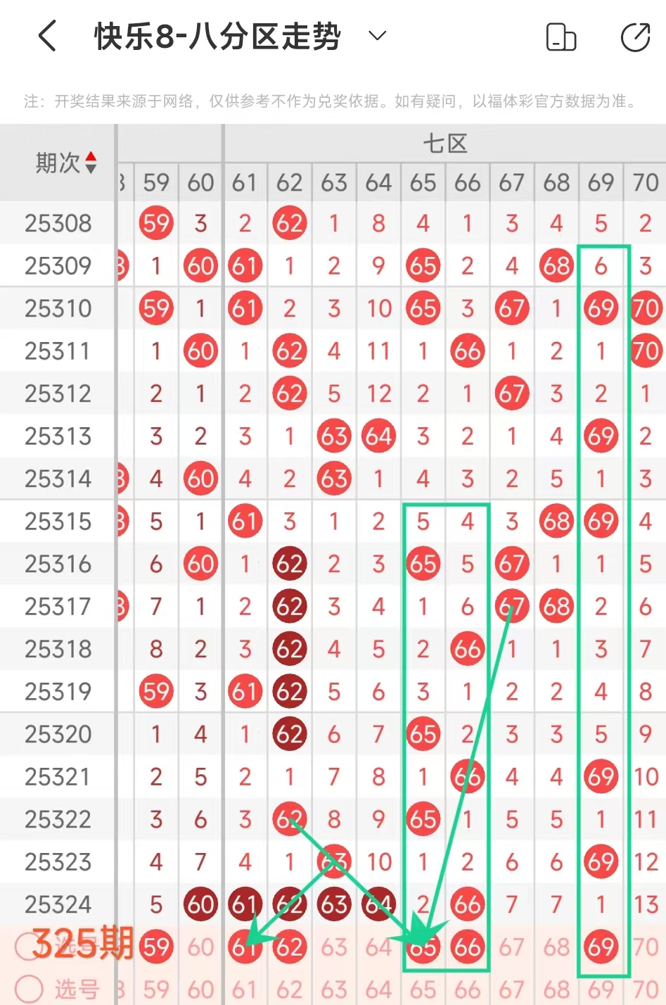 上期七区开出61 62 63 64 66这5个号码,本期考虑出3个左右。