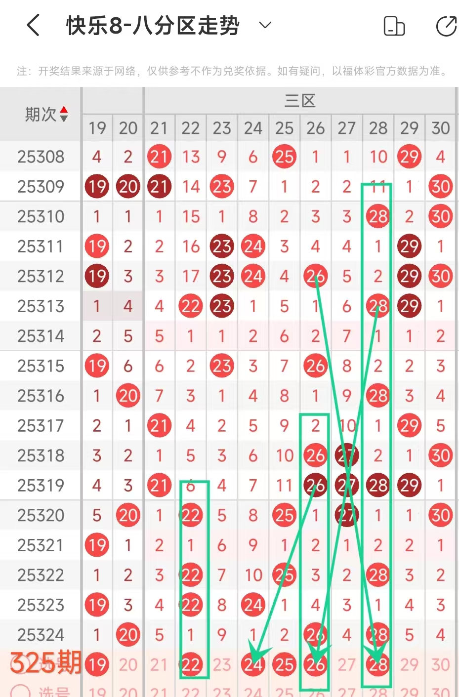 上期三区开出26 28这2个号码,本期考虑3个。