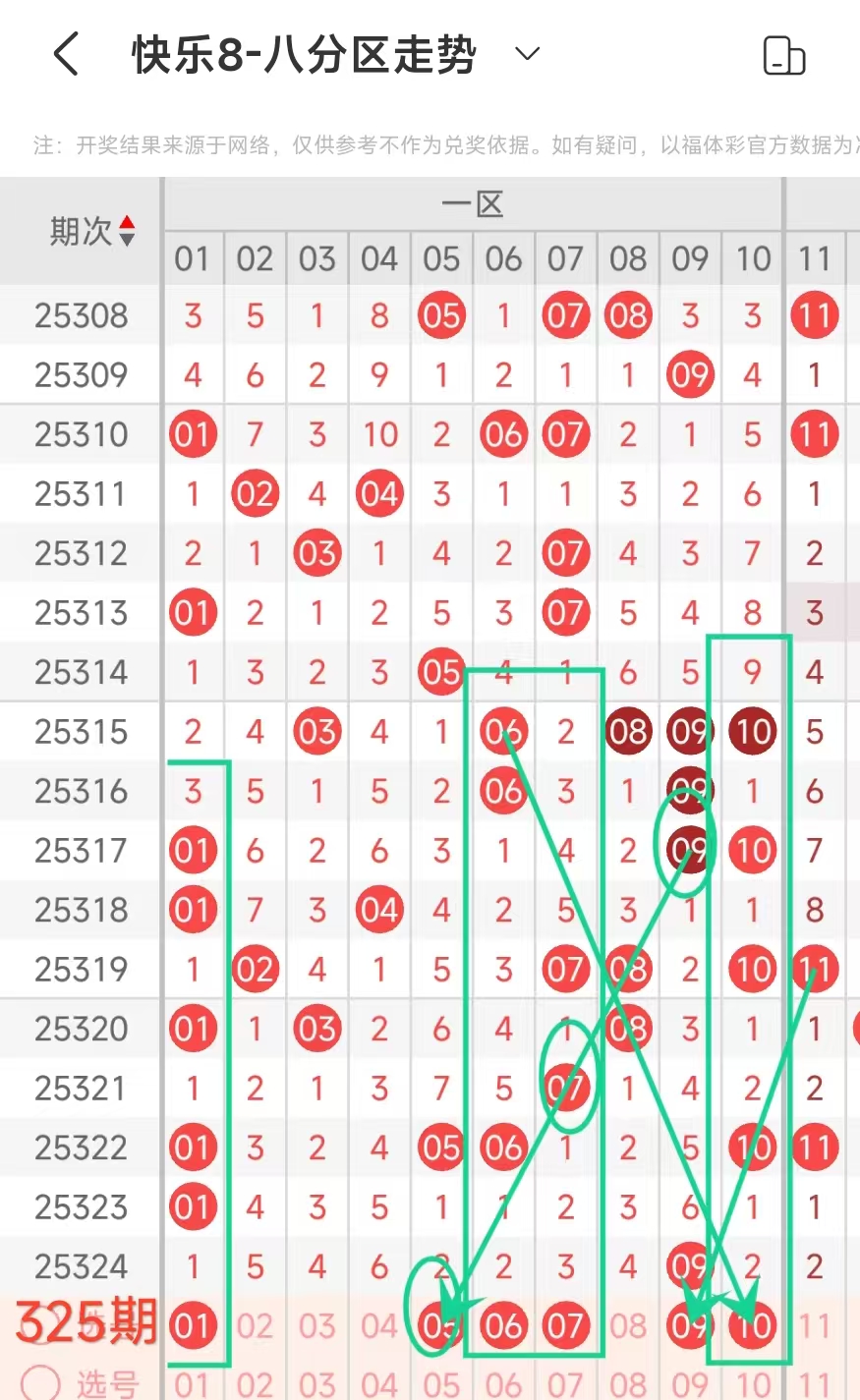 金莱快乐8第325期:上期命中4胆全拖一注
