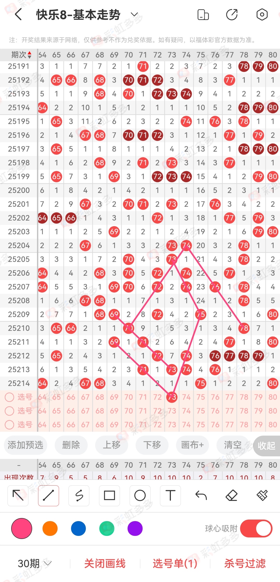 老头快乐8第25215期分析:公推连红4期,啧啧,本期推荐73