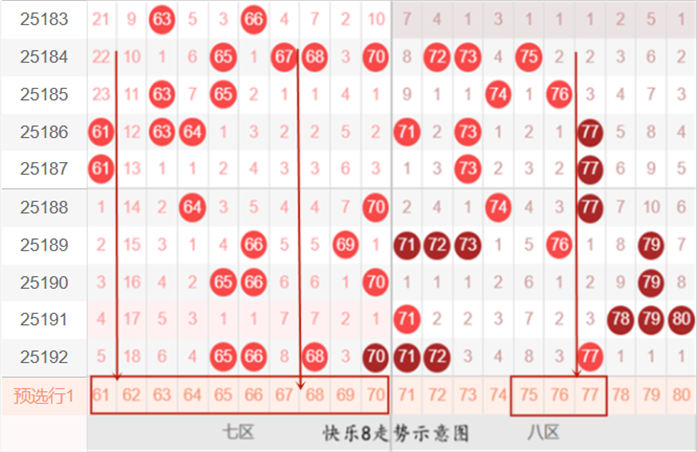 快乐8第25193期:冷热区间判断及号码分布推荐分析