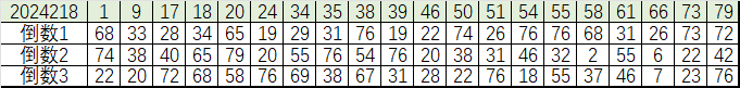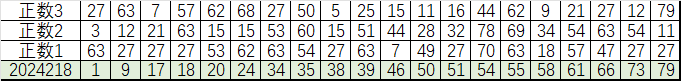 我感觉选热的同时,还要注意防冷条件开出,可以直接选取每个号码跟随出次前三的号码,也可以考虑把出次最后的三个数字加进去,不过这样可能号码太多,可以尝试。图上也能看出单独号码跟随的情况,我就不一一统计每个号码的出次了,我这里考虑提高概率,取每个号码历史跟随的前三号码和后三号码,根据2024218期的号码,我关注正数3和倒数3的号码号码为: