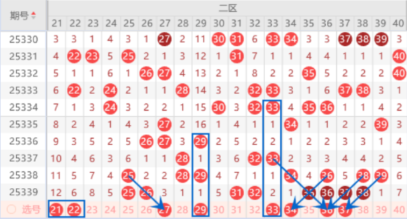 下图为21-40号数字区间走势分析图:
