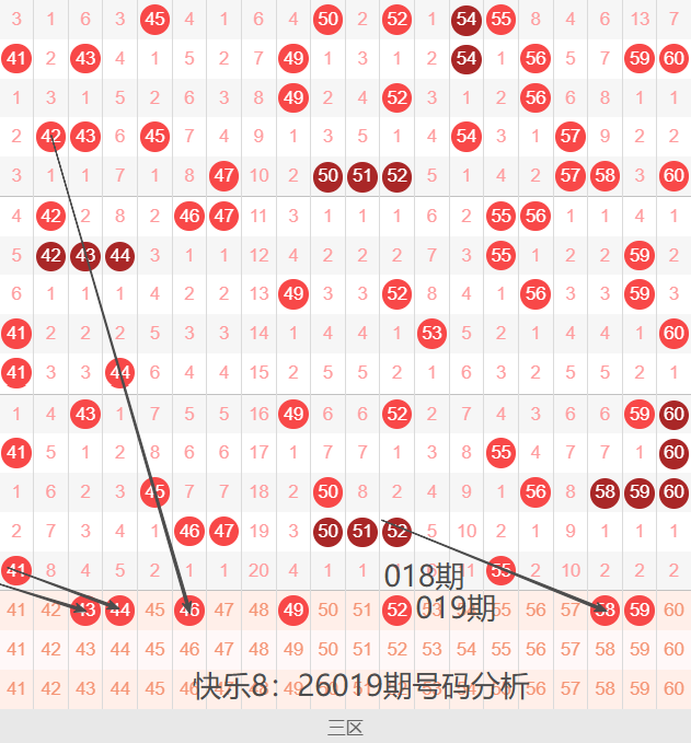 三区间41-60号码球走势,如下图: