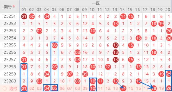 下图为01-20号数字区间走势分析图: