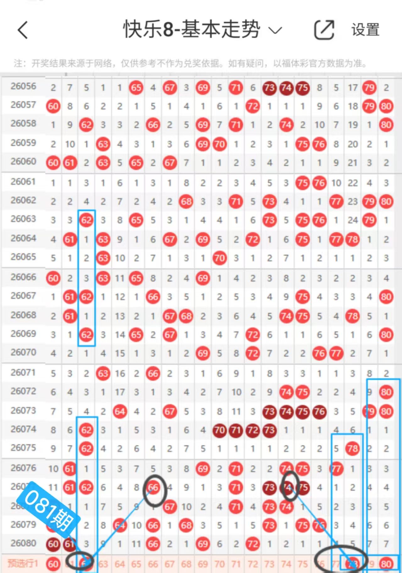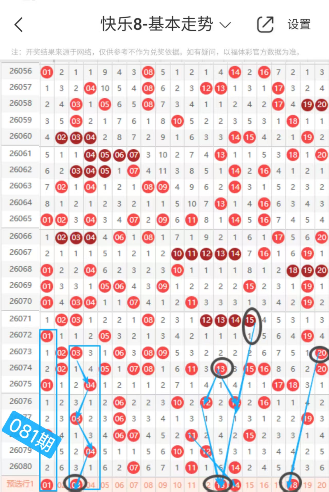 快乐八081期走势分析(新的开始+好运连连+继续跟上吃肉)