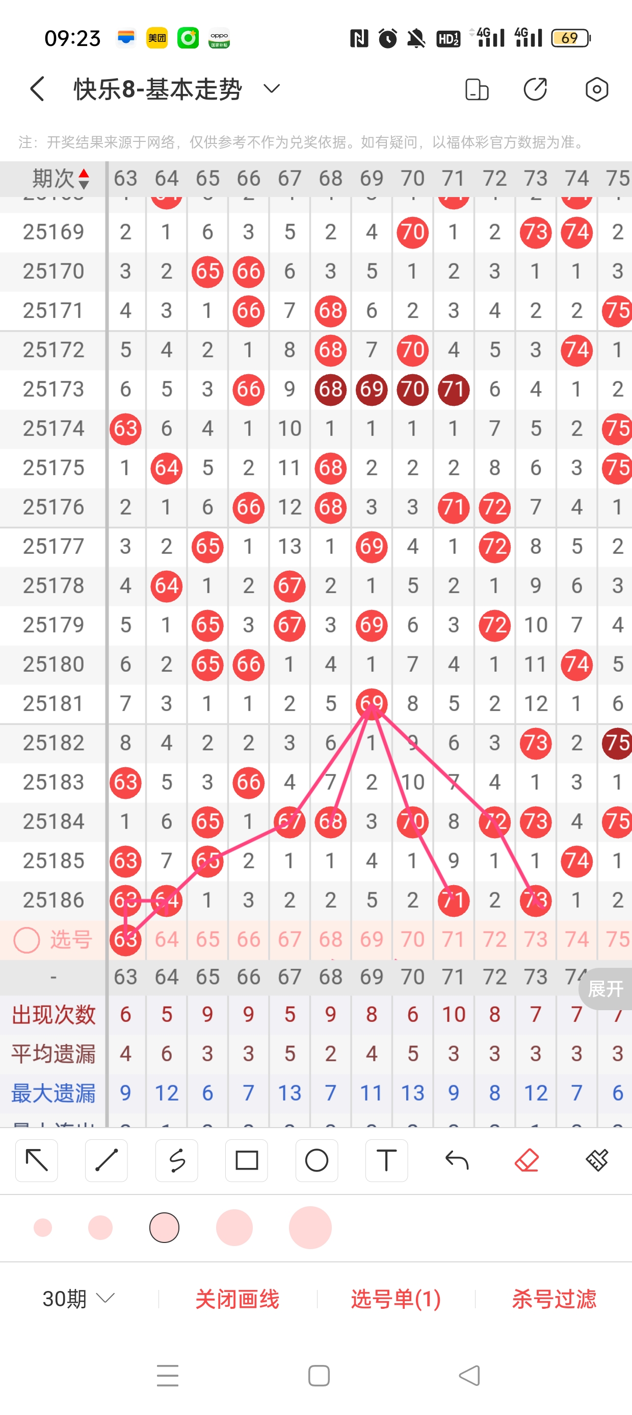 25187期快乐8,上期命中胆61、71、73、77,本期目标一等奖