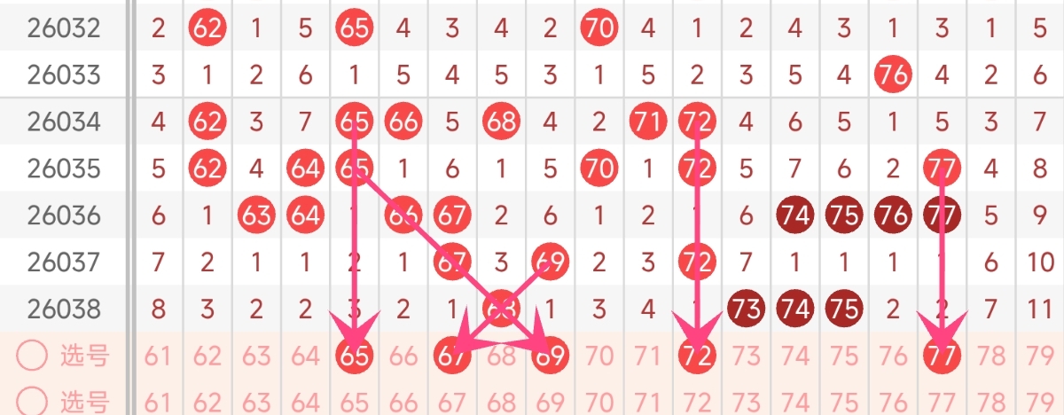 四区号码的出号情况相对较为分散。在近期的开奖中,67、72和77这几个号码出现的次数较多。67号在最近的表现十分亮眼,多次出现在开奖号码中。72号在前期出号较少后,最近开始频繁现身。77号在近期也有不错的走势。本期在四区可以围绕67、72、77进行选号,同时搭配65、70、75等号码,提高选中的概率。而且还需注意已经连续多期漏出的号码,本期有几率回补。综合考虑,本期四区推荐关注号码:65、67、69、72、77。