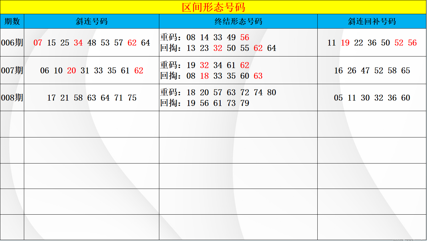上期三区的开号中在区间的形态上继续保持着不放空的模式,同形态下方也是有分边上的出号重点,从区间做形态上的判断重点,还是要注意在同形态下方的布局模式,其中45 54两个孤码中就要特别注意不放空的出号,两码中考虑择一的布局或不同形态的组合。而在区间的空位中本期也要重点关注周期接力上的模式,其中对应的小周期回补中要重点关注在47 49 50 52 59 60六码中,以放空形态的对应回补位置可优先考虑在49 50 52 59 60五码,其中做同尾上只考虑一码下方的出号,即49 59下方的位置不做同时组合,只考虑择一的形态回补。而在温冷中要关注接力的出号点位,本期的温冷号码在各个区间都是有不错的回补位置,三区中也要考虑出号模式,侧重44 46 58的分边优选,防守空位的形态做1-2码的布局选择。
