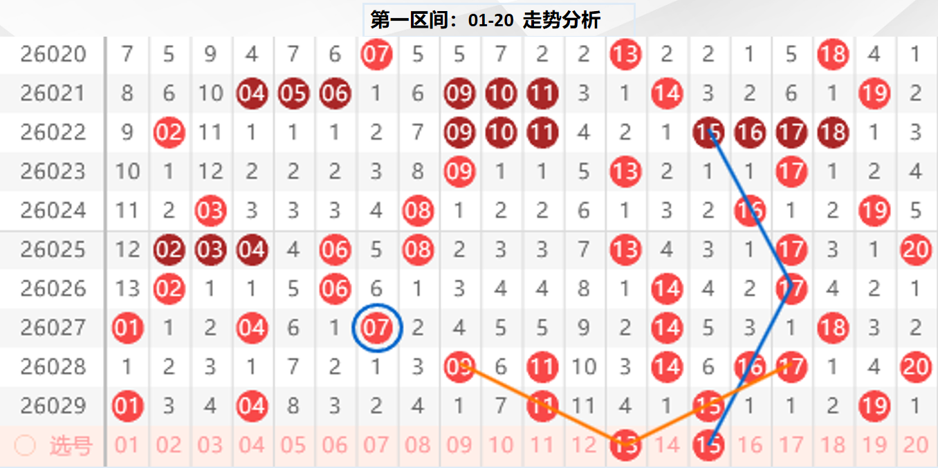 一区分析:【01-20】(走势图标注号码非小黄车大底,请谨慎参考,具体思路将在直播间分享讨论)
