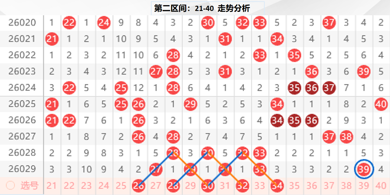 二区分析:【21-40】(走势图标注号码非小黄车大底,请谨慎参考,具体思路将在直播间分享讨论)