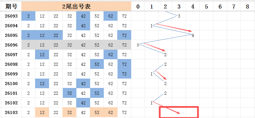 一尾上期开出一码走势,本期号码32和号码52都是三斜连的号码走势,还都是遗漏1期的号码,能够开出其中一码或者两码全开。历史上是有过这种走势,两个号码全部开出的情况。另外看好遗漏2期的号码12的开出。